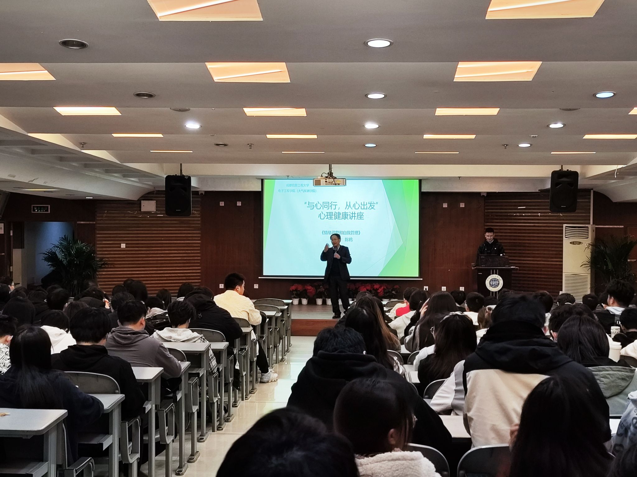 为进一步深化我院心理健康教育工作,提升大学生预防和解决自身心理问题的能力,引导其更好地认识自我、接纳自我、发展自我,提高心理素质。我院于3月28日晚7点,在学术报告厅成功举办“电子之光”系列活动之“与心同行,从心出发”心理健康讲座。