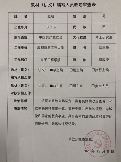 我院对史朝同志作为《Principle and System Meteorological Radar》教材自编讲义(参考资料,未出版)的编写人员开展了政治审查工作,经学院党政联席会议定,结论为“通过”。现就史朝同志的政治审查情况进行公示,公示期3个工作日,如有异议,请与Betway体育西汉姆联办公室联系,联系电话:85966898。