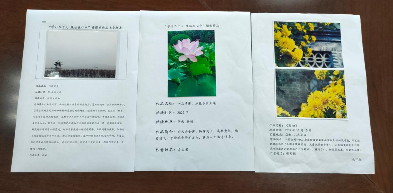 为进一步加强学院反腐倡廉宣传教育工作,加强党风廉政建设,提高广大师生遵纪守法的意识和自觉性,从源头上构筑牢固的思想道德防线,从环境上努力营造良好的廉政氛围,充分发挥廉政文化在反腐倡廉工作中的基础性作用,确保学院各项事业的健康、有序发展,学院党委在11月特开展了“学习二十大廉洁在心中”系列比赛活动,以照片和文字传播廉政理念、以摄影活动、学习感悟传递清风正气。