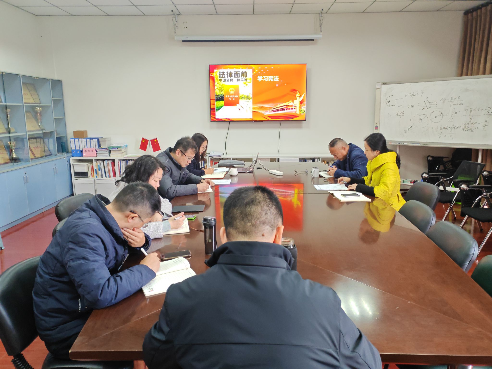 学院党委副书记、纪委书记杨勇带领与会人员学习了《中华人民共和国宪法》、《成都信息工程大学章程》。
