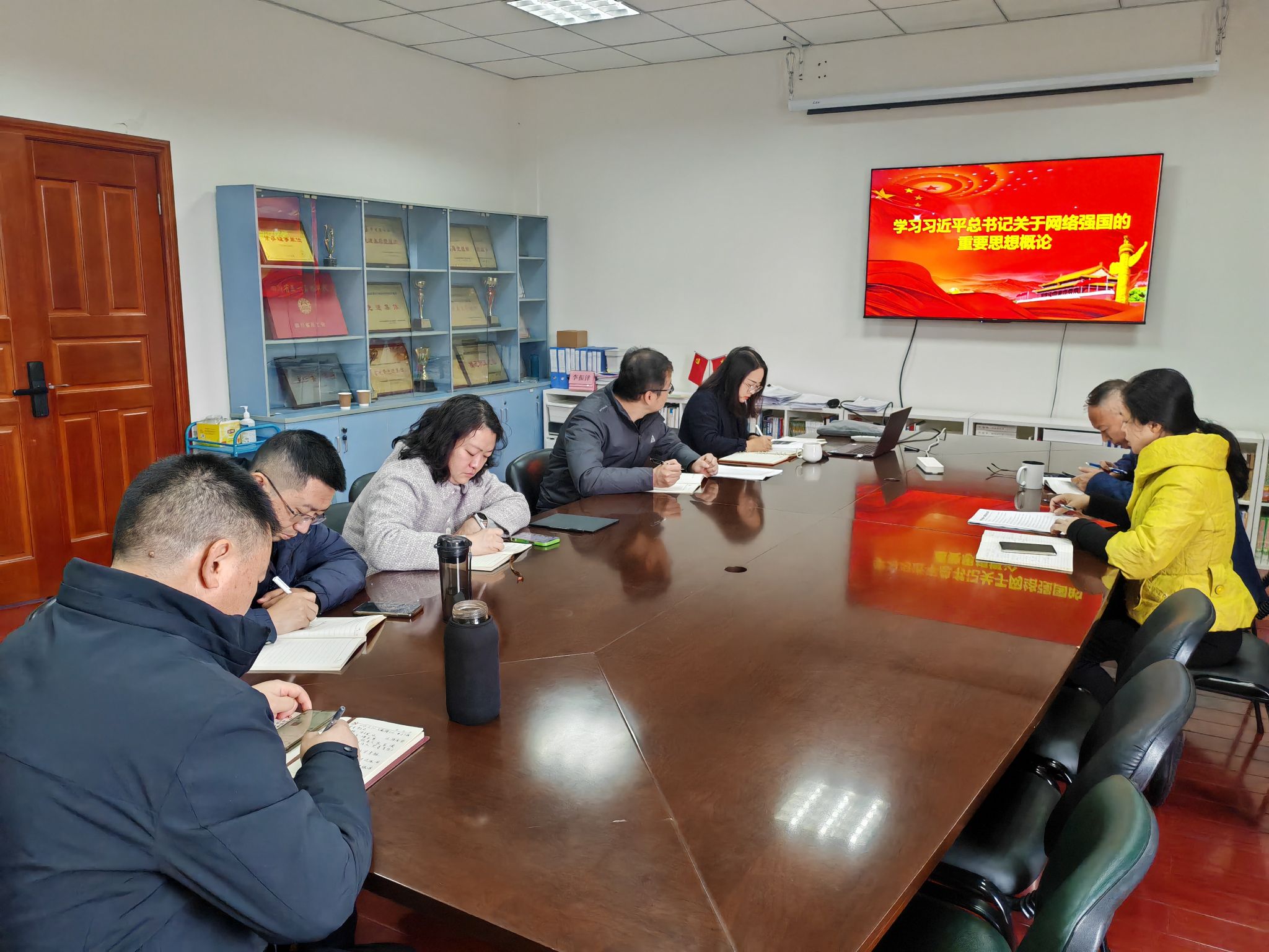 学院党委副书记、副院长史朝带领与会人员学习了“习近平总书记关于网络强国的重要思想概论”,概论深刻阐述了网络法治建设的时代要求,指明了网络法治建设的实践路径,强调了网络法治建设的为民理念,提出了网络法治国际交流合作的中国主张。与会人员一起学习了新时代我国网络法治建设取得的历史性成就以及宝贵经验。