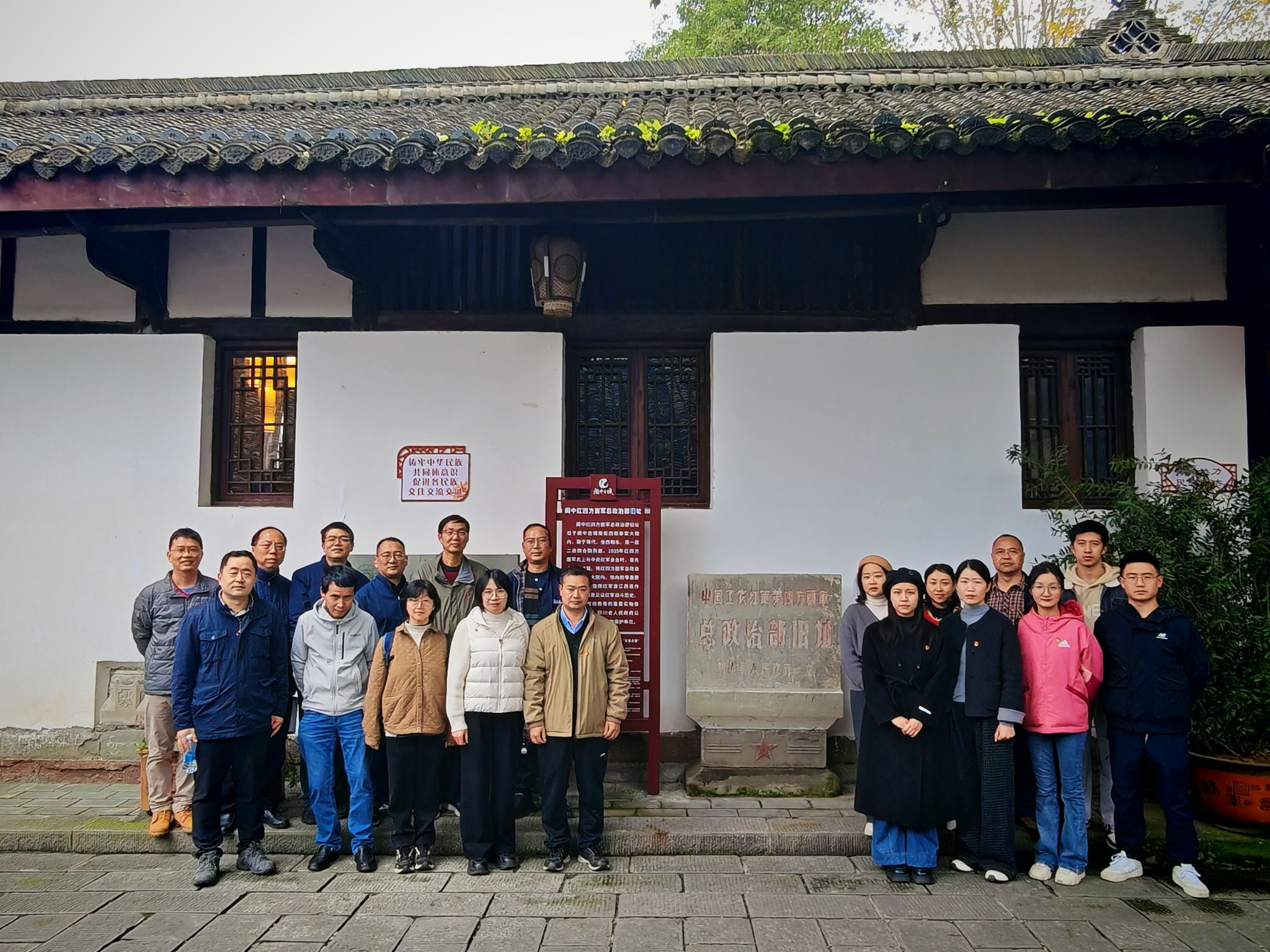 11月15日,党员同志们来到中国工农红军第四方面军总政治部旧址。通过实地参观与史料学习,大家全面了解了红四方面军的长征路线、沿途重大战役细节,以及其在党的建设、政权建设、军队建设和群众工作等方面的重要举措,进一步夯实了对革命历史的认知。参观结束后,王海江书记以“阆中苏维埃政权的建立、强渡嘉陵江战役、传承长征精神”为主题,为全体党员讲授专题党课。他指出,长征精神是中国共产党的宝贵精神财富,虽历经九十余载,其蕴含的坚定信仰、不畏艰险、团结奋斗的内核永不过时;当前身处和平年代,面对新的挑战与考验,全体党员更要坚定对马克思主义的信仰、对中国特色社会主义的信念、对实现中华民族伟大复兴的中国梦的信心,以初心为舵、以实干为桨,在本职岗位上砥砺前行,为学院与学科发展贡献力量。