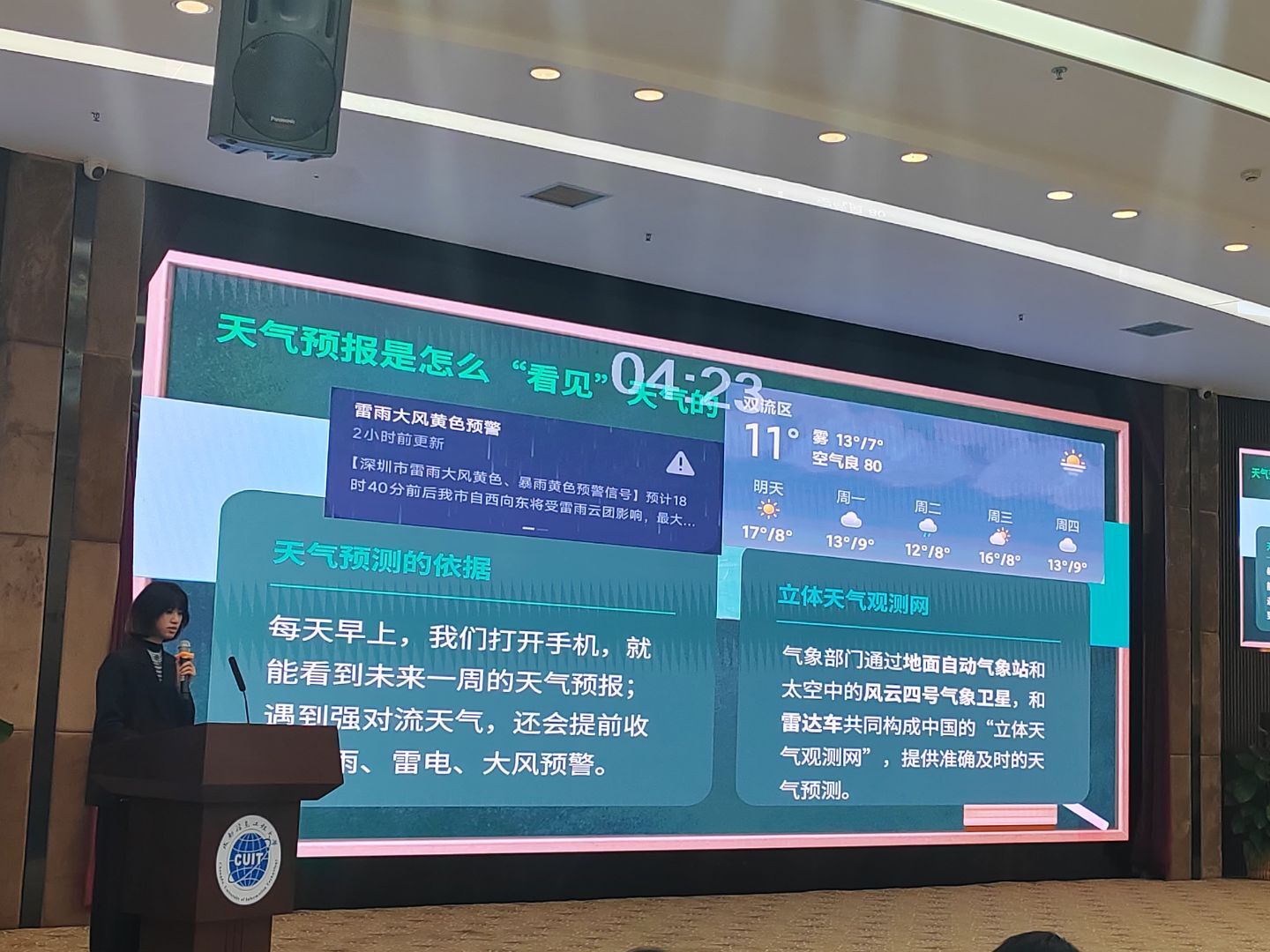 本次活动由成都信息工程大学党委betway中国西汉姆联官网部主办,Betway体育西汉姆联(大气探测学院)、“于心于行”名辅导员工作室、马克思主义学院联合承办,全国高校“双带头人”教师党支部书记“强国行”专项行动团队执行。活动自11月启动以来,吸引了全校各学院学生踊跃参与。经过线上比稿初选,12名选手从中脱颖而出,在决赛现场围绕气象探测仪器背后的研发故事、老一辈气象专家的奋斗历程、优秀气象校友的突出贡献三大主题,用真挚的情感和生动的表达,带我们重温气象事业的峥嵘岁月,感受科研工作者的家国情怀,为我校百余名师生呈现了一堂生动的思政实践课。