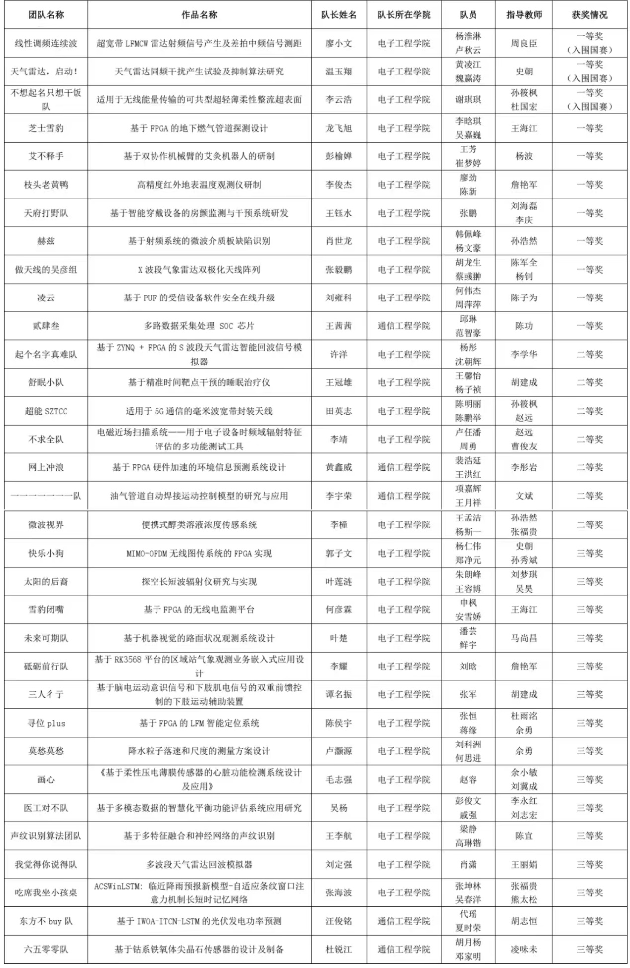 “兆易创新杯”第十九届中国研究生电子设计竞赛西南区赛学校获奖名单