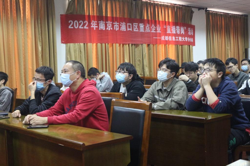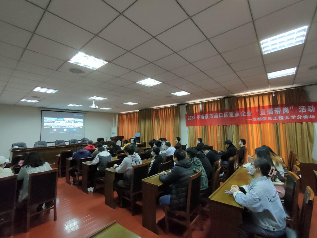 2022年11月23日下午,2022年南京市浦口区重点企业“直播带岗”活动在线上举行,我院作为成都信息工程大学线上分会场参与了本次活动的举办。参与本次活动的有南京市浦口区人力资源和社会保障局,南京三乐集团有限公司等5家重点企业和多所院校的相关领导及师生。我校招生就业处副处长朱正华、学院党委副书记杨勇,2023届毕业生辅导员和部分毕业年级学生在气象楼215会议室参加了本次会议。