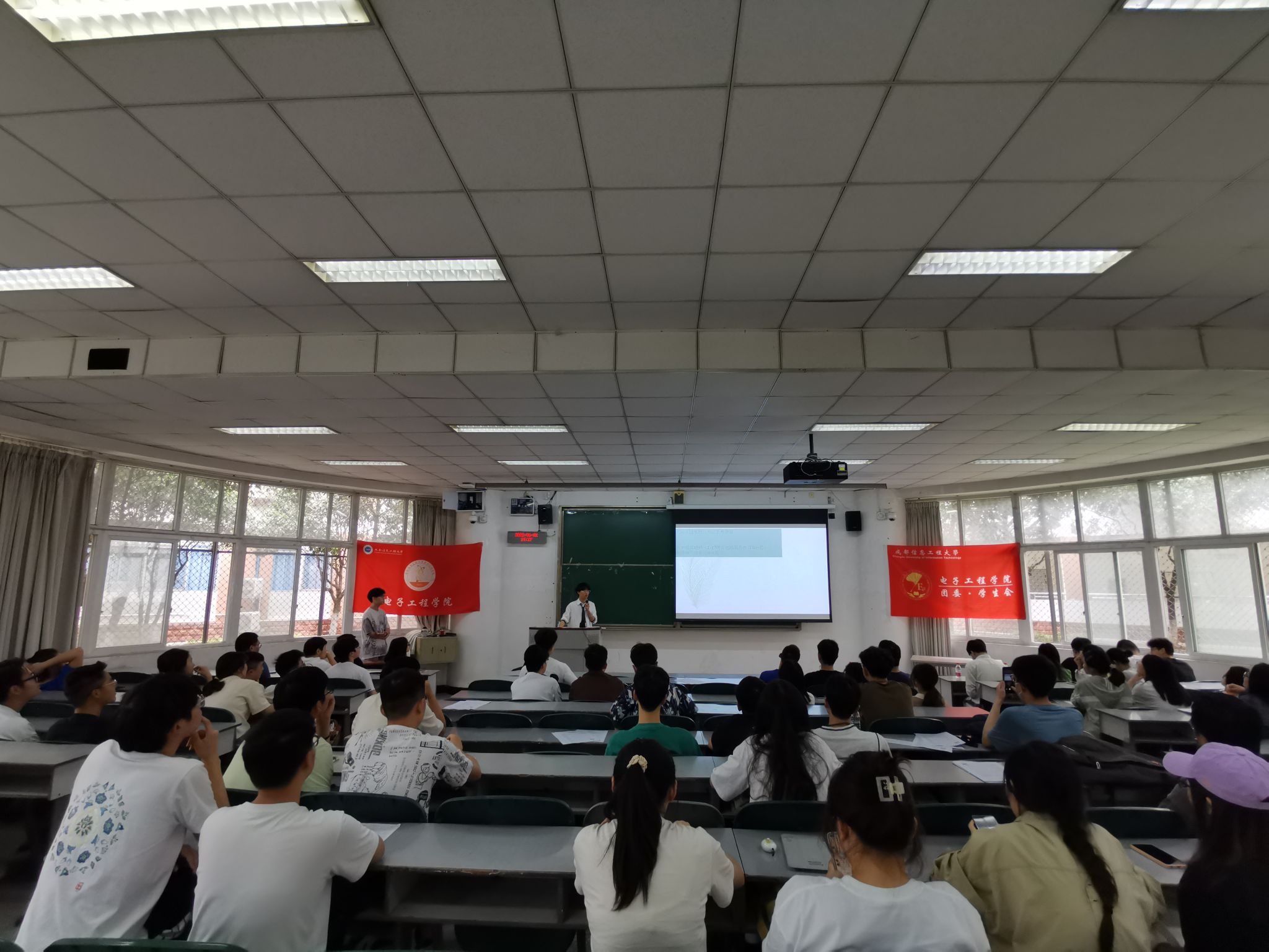分享会上,王重淞、黄熠昕等7位同学结合自身考研经历给同学们做了经验分享。从宏观的备考流程介绍,到专业课的复习方法。从院校信息搜集,到专业方向确定。从备考节奏规划,到复试经验技巧。学长学姐们逐一向大家讲解着考研路上遇到的种种困难和相应的解决方法。并着重介绍了同学们热衷报考的如成都信息工程大学、电子科技大学、西安电子科技大学等目标院校,并给学弟学妹们分享了备考资料和书籍。纪巧、孟琪等5位同学结合自身就业求职经历给同学们做了经验分享,从简历制作到修改美化,从信息搜集到精准投递,从面试礼仪到交谈技巧。5位学长学姐倾囊相授、答惑解疑,耐心的为大家讲述着就业过程中所遇到的种种环节,传授着宝贵的经验和心得。现场同学们也踊跃提问、仔细笔记。会后,学院为同学们准备了轻松愉悦的茶话会,供同学们进一步地交流讨论考研和就业过程中的一些心得和疑惑。