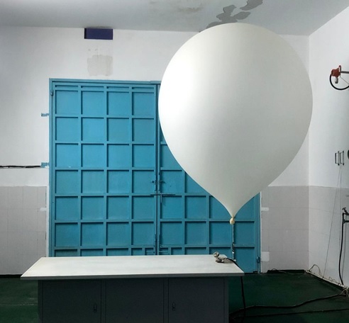 正在充气的探空气球。新华社记者黄垚 摄