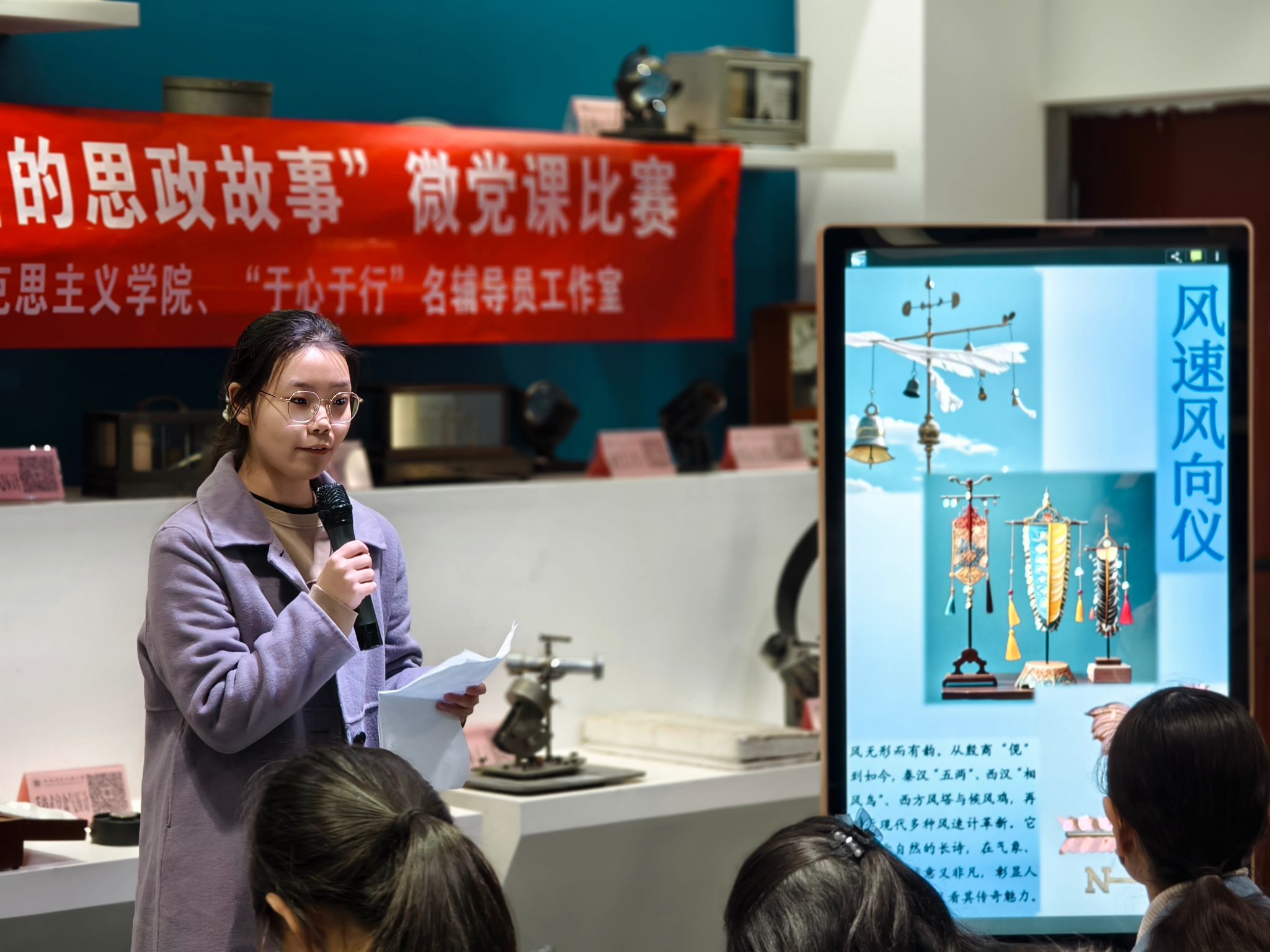 马克思主义学院教研室主任肖艳对选手的表现进行了点评。肖艳提到本次活动的目的是通过选手讲解让文物器材不再局限于博物馆中,让更多人了解到文物背后的故事,了解气象科学家精神,以及气象探测仪器的发展历程。让学生感受中国气象事业的蓬勃发展,激发学生的创新精神,强化学生的国家意识,培养学生为国争光的家国情怀。