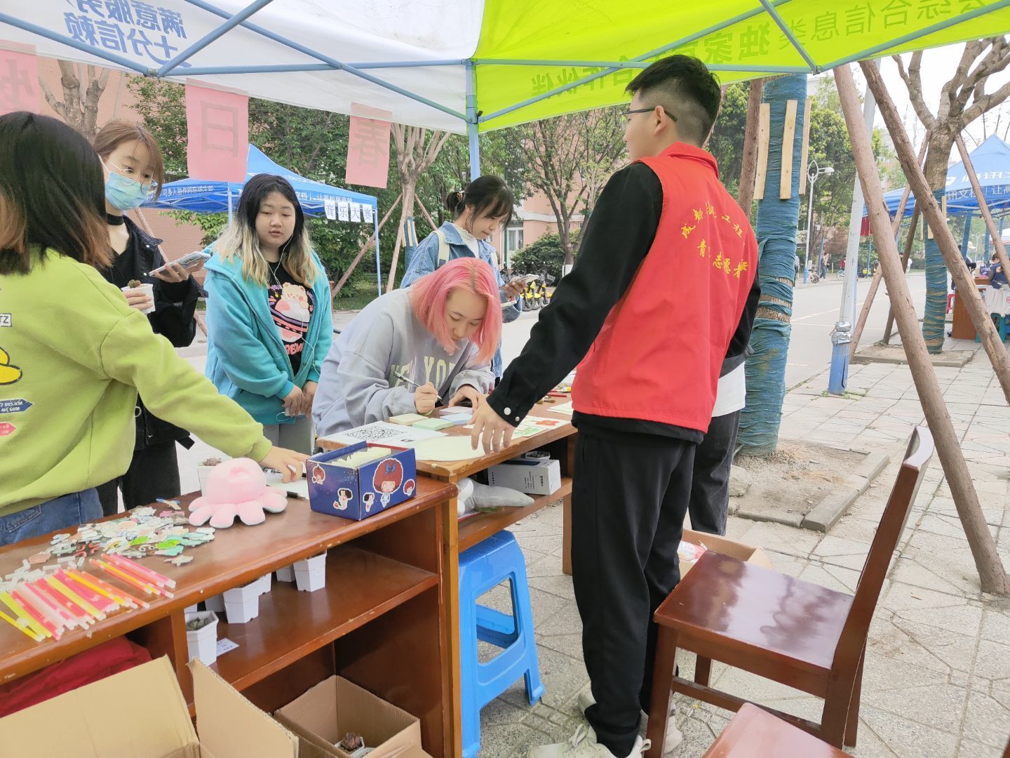 迟日江山丽,春风花草香。为迎接春天的到来,展现年轻学子对春天的向往,对春天的祝福,同时在当今疫情的大环境下,倾听同学们的感想与盼求。3月30日至31日,青志协电子分会的志愿者在校园内摆点举行了 “春日物语”的春日活动。