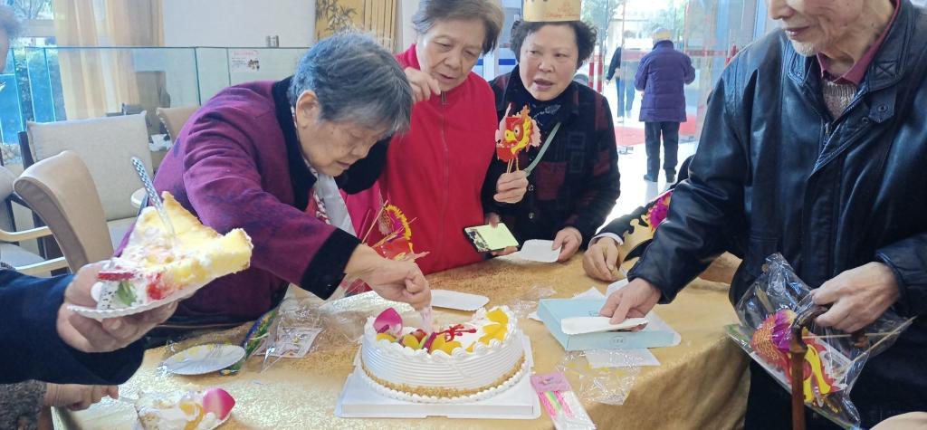 上午8:40志愿者们到达活动地点后,随即帮忙布置场地,等待老人们的陆续到来。在等待活动开始的过程中,志愿者们与老人进行交谈,认真倾听他们讲述着自己的故事,分享自己的日常。社区负责人到达后,教会志愿者们手工纸龙的做法,志愿者们学会之后开始分散开来教老人们制作。手工纸龙的制作让志愿者和老人们感受到了手工纸传统技艺的多彩。在接下来的生日环节中,志愿者们为过生日的老人唱生日快乐歌,并为他们拍照。最后,活动结束后志愿者们和老人们一起合影留念。