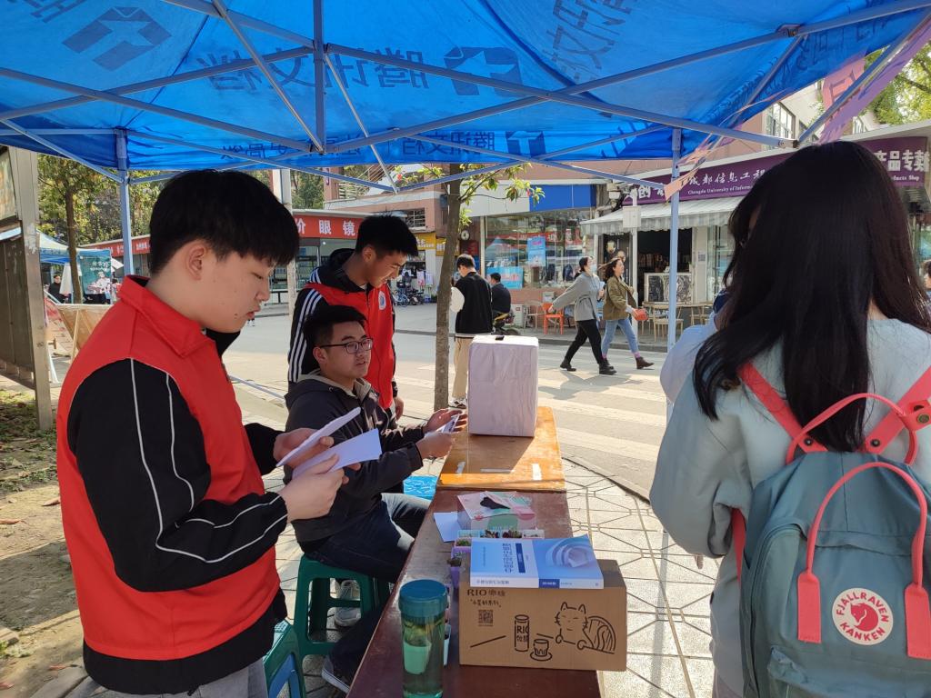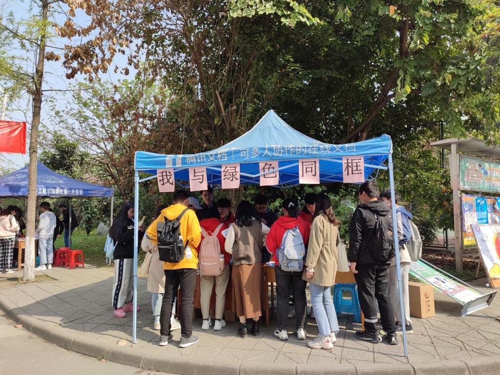 【本网讯】3月23日,青志协的干事们在银杏大道设置“我与绿色同框”活动的摆点处。该活动由青志协的小干事们构思策划,在四位部长的提点下,最后经四位部长审核通过,并如期举行。