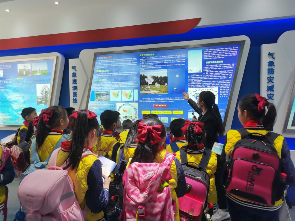 接下来,由气象科普讲解员带领小朋友们从文字展区开始参观,最后到实物展区。在文字展区讲解员从气象探测发展历史、气象观测系统、气象防灾减灾的基础知识以及人工影响天气四个部分开始讲解。气象科普讲解员讲完了历史的发展,到了现代的气象探测,讲解员开始介绍气象探测方法。通过博物馆的相关图片,小朋友们便产生了各种好奇与疑问,积极发言,向气象科普讲解员提问。现场气氛十分活跃。气象科普讲解员耐心解答,通过通俗易懂的例子讲解,小朋友们收获满满。接下来是气象防灾减灾的基础知识以及人工影响天气的讲解,小朋友们对灾害的了解更近一步,同时也学会了相应的防灾减灾知识。人工影响天气的方法也让小朋友们进一步了解到知识的力量。文字展区参观完后,到了实物展区,小朋友面对讲解员讲解的各种气象仪器,充满了好奇,兴致更加高昂。讲解员带着小朋友从古老的纸质材料和卫星云图接收设备开始了解,接下来是各种风速传感器,温湿传感器,气压计,日照计等也一一讲解。最后是博物馆的镇馆之宝—空盒气压表。