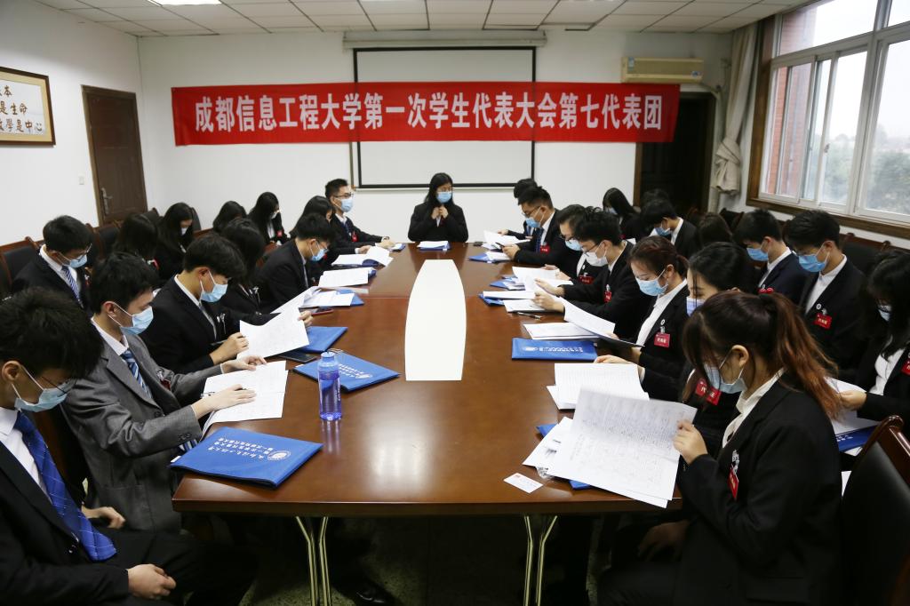 根据学代会分团会议议程,全体代表查看大会主席团、大会秘书长、副秘书长成员建议名单,在发表了对建议名单的意见后,举手表决、一致通过。会议第三项议程,全体正式代表讨论了《成都信息工程大学第一次学生代表大会日程(草案)》,审议并通过了大会日程(草案)。最后,代表团副团长陈坤强调了会议纪律。