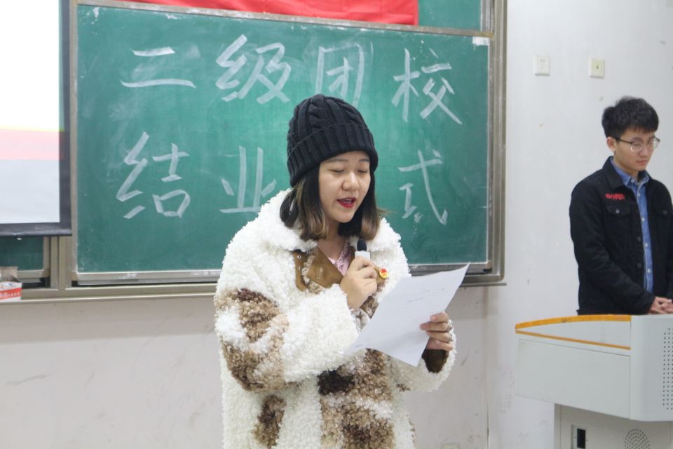 结业仪式开始的第一项,全体齐唱中国共青团团歌。接下来优秀学员代表罗浚洋同学上台发表感言,他向大家讲述了自己在团校学习中的收获,并且表示在今后的学习生活中要严格要求自己,更加刻苦学习马克思主义理论,在学习上刻苦钻研、勤奋努力,真正起到榜样作用。结业仪式开始的第三项,团委副书记苏露老师发表了讲话。苏露老师充分肯定了此次二级团校的各项工作,同时对大家提出了殷切希望和严格要求,并对大家以后的工作指出了方向。二级团校各项总结完毕后,主持人宣读了二级团校结业、优秀学员名单,由苏露老师为优秀学员颁发证书并合影。这为学员们树立了榜样,激励着我们认真履行自己的职责。