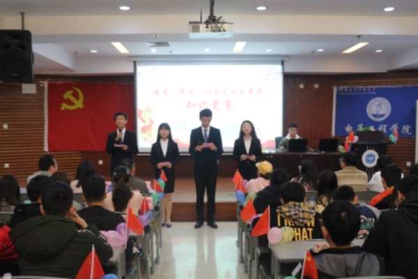 【本网讯】为庆祝新中国成立七十周年,加深同学们对国史、党史和社会主义发展史的了解,10月31日晚,Betway体育西汉姆联在学术报告厅开展 “不忘初心、牢记使命”主题教育之“国史、党史、社会主义发展史”三史知识竞赛。到场的嘉宾有Betway体育西汉姆联党委副书记杨勇老师、Betway体育西汉姆联学生科副科长肖艳老师、Betway体育西汉姆联团委书记周意超老师、各学院参赛的选手、Betway体育西汉姆联的全体党员、预备党员、积极分子以及部分同学代表。