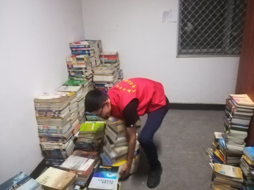 青志协电子分会的志愿者们跟着图书馆的老师将旧书籍从四楼搬运至负一层,并进行分类摆放。期间,志愿者们分工明确、合作默契,在图书馆老师的指导下将书籍整齐地摆放在墙角。经过志愿者们一个半小时的努力,小山一般的书被志愿者们整理的整整齐齐。图书管理员也对志愿者们的辛勤付出做出了肯定。
