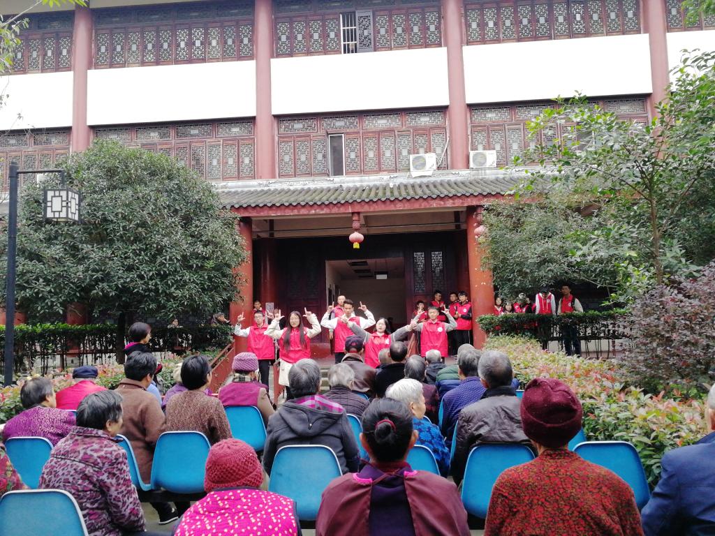 本次活动过程中,电子团委青志协的负责人带着电子院各部门部长一起去给居住在寿而康老年颐养中心的老年人送温暖。一到敬老院,一部分人就去和老人聊天,驱赶围绕在老人身边的孤独,给老人带去欢乐;另一部分人就拿起了清扫工具,为了老人能有个洁净的生活环境而开始打扫。在老人们做健康养生操时,大家也和乐融融地跟着一起做。之后大家又给老人们表演了精心准备的节目,获得了老人们和工作人员的一致好评。最后,举行了授牌仪式,表明了寿而康老年颐养中心正式成为成都信息工程大学的志愿者服务基地,活动结束后,大家拍了合照留念,因为每位老人都是一本书,而且是孤本,希望大家能多多关爱老人。