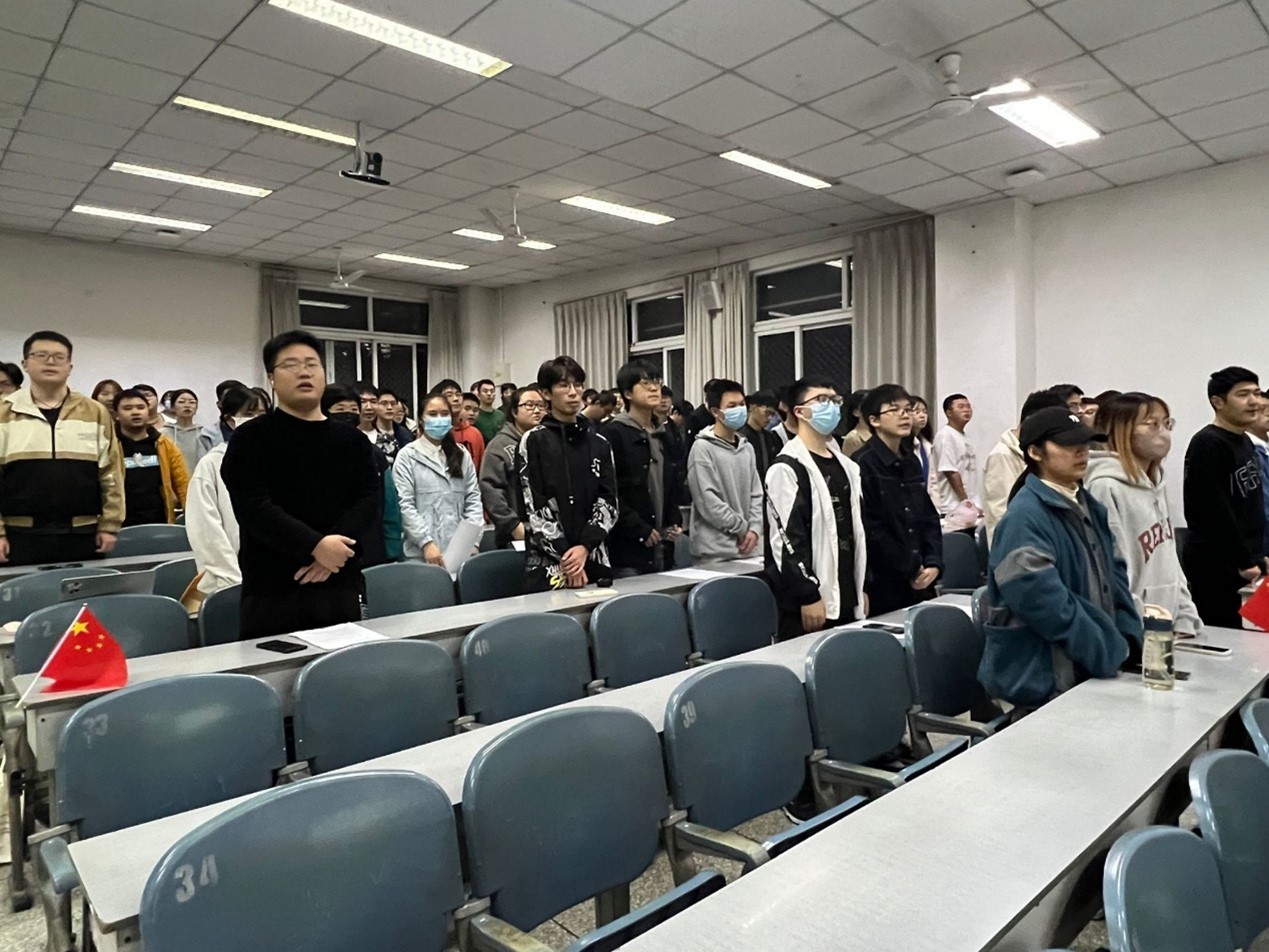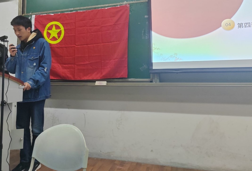 全体起立齐唱国歌之后,付骏杰学长为同学们详细介绍了共青团基层发展团员细则、团组织选举规则、掌握团员档案管理、团费收缴、发展新团员、团组织生活开展、团员奖惩、团系统评优、团员代表选举、入党推优等团支部基础工作并强调了其中容易被我们忽视的一些问题。