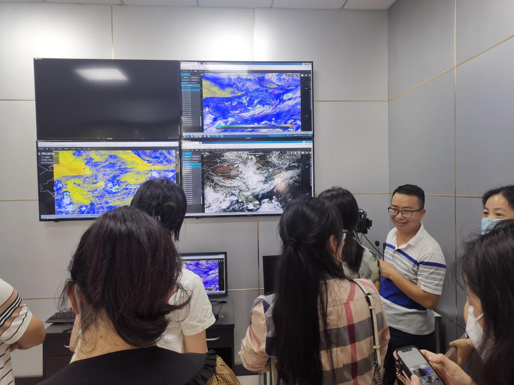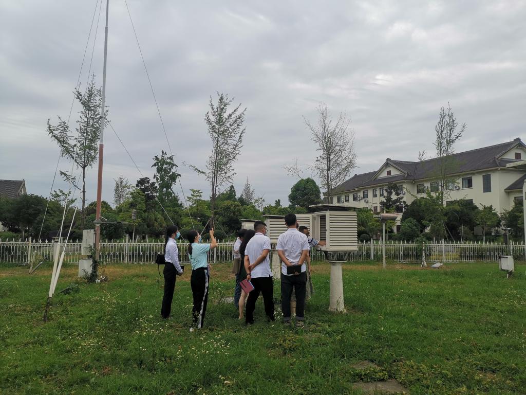 座谈会后,基地志愿者组织与会人员参观了学院科普基地气象观测场、大气探测博物馆、风云四号卫星云图室等。
