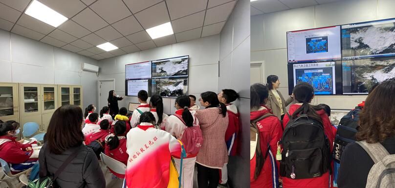“红领巾气象学院弘毅气象科普小分队”的同学们在气象科普志愿者的带领下,在成都信息工程大学全国气象科技(普)文化园区内参加了综合气象观测场、大气探测博物馆、风云四号卫星地面接收器、701雷达车、气象灾害VR体验、随手拍笑脸、气象科普游园会等研学活动。